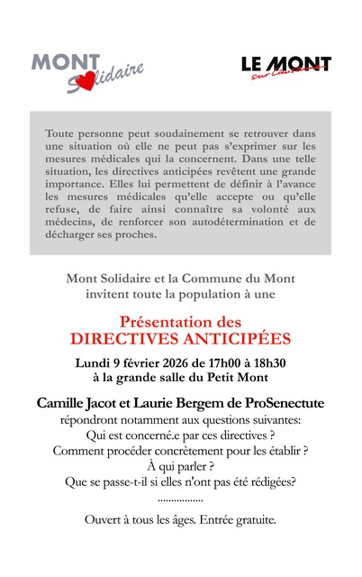 Mont Solidaire – Présentation des Directives Anticipées – 9 février 2026